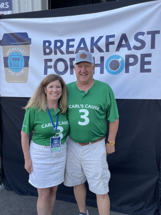 His name was Carl Specht, and he had the world at his fingertips as a young, well-educated professional in the prime of his life. But he harbored a darker side that his family struggled with for years before Carl took his own life in 2017. For many families, grief would take over at that point. His parents, Kelly and Bob Specht were having none of that, and today, Carl’s Cause is spreading a gospel of hope for those mired in hopelessness by promoting mental health awareness. “There was a defining moment shortly after losing Carl, our family wondered how we would survive this,” Kelly remembers. “Bob made the statement ‘We have to bring mental health awareness to the Stadium Level.’ That statement motivated us to do something in Carl’s memory. If this could happen to Carl, it could happen to anyone—we made a commitment to bring awareness out in the open.” Carl loved sports, so a natural opportunity seemed to be getting stadium scoreboards around the nation to proclaim the message: “It’s OK to not be OK—there is help!” One in five people will suffer a mental health crisis of some kind in their lifetime, she notes: “That is a lot of people in any given row at a stadium.” The Spechts agony didn’t begin with Carl’s death. “Access to care was a huge obstacle for Carl, especially after moving back to Kansas City from California,” Bob says. “Also, HIPPA laws prevented us from helping him get the help he needed, and his mind prevented him from understanding. There was not a safety net.” When The University of Kansas Health System asked them for a three-year commitment to fund the first Behavior Health Navigator, he says, “we knew this was something that would have helped Carl. We also learned, there are few ‘grateful patients’ who give back to Behavior Health” compared to other service lines such as cancer or heart cases. The hospital connected them with the Royals, and last year saw the first ‘Mental Wellness Day at the K,’ with Bob throwing out the first pitch, Kelly in the Buck O’Neil seat, and more than 500 Carl’s Cause supporters in the stands wearing ‘green t-shirts’ for mental health. The Spechts have also teamed with the KC Royals and Blue KC to promote the new 988 crisis hotline. The organization’s web site provides resources and compelling tales about the impact the Spects have already had. “It means everything to us to know we are saving lives,” Bob says. “Kelly and I have the ‘lived experience’ of trying to get help for our young-adult son who needed help and we couldn’t help him. We don’t want anyone to go through that same traumatic experience of losing a child or loved one.”