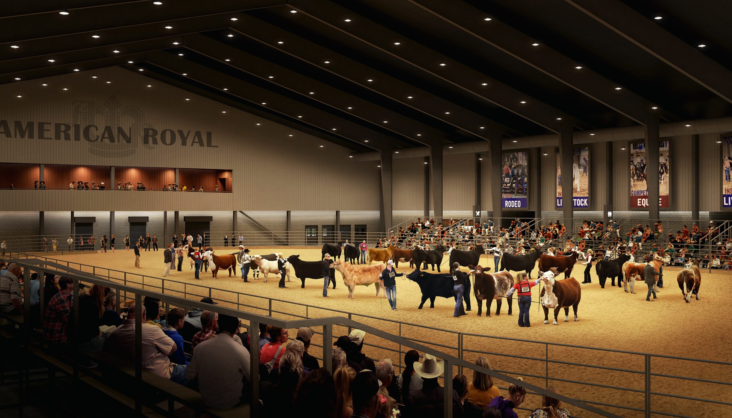 The new facility encompasses 390,000 square feet with three additional arenas for livestock and rodeo shows and a learning and engagement center. The facility is capable of housing 1,500 horses or nearly 4,000 head of cattle, according to American Royal.