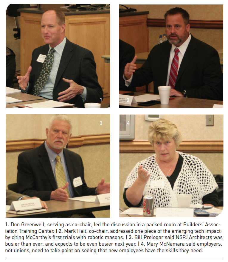 That topic provided a segue into changes in the work force reliant on that technology. The Builders’ Association’s Richard Bruce, who oversees the Training Center said employers in the sector were no longer looking simply for a pair of hands to hire. “They’re looking for knowledge workers,” Bruce said—the kinds of people with the critical-thinking skills to leverage the potential gains that technology affords.