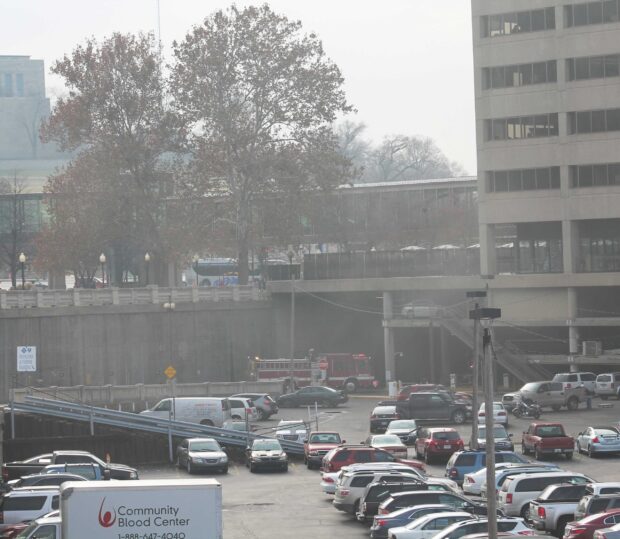 A single car caught fire Friday afternoon on O.K. Street, located near the parking garage of Blue Cross Blue Shield of Kansas City. No injuries were reported.
