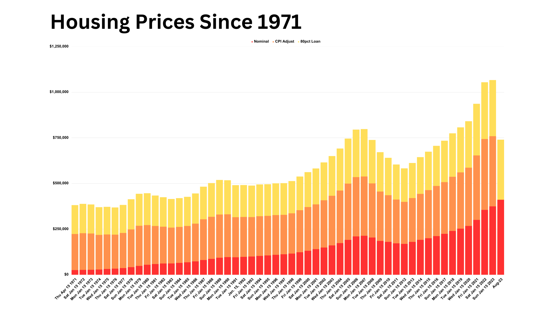 Over the past decade, though, home prices have more than doubled from $169,553 to the current $411,000 listed by the realty professional service MLS. That, combined with the run-up in mortgage rates, has crushed home sales, even in a time of high demand from Millennials, a demographic larger in numbers than even the Baby Boom generation.