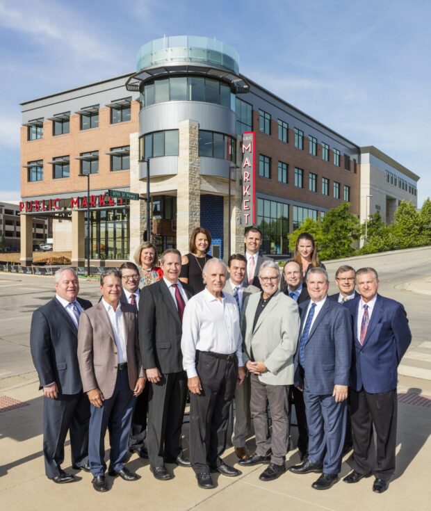 Front row (l-r): Scott Anderson, Riley Drive Entertainment (Ignite and Saints); Terry O’Leary, EPC Real Estate Group; Chip Corcoran, Renaissance Infrastructure Consulting; Dennis Eskie, Eskie + Associates; Blake Schreck, Lenexa EDC; Mayor Mike Boehm, City of Lenexa; Ken Block, Block Real Estate Services and Multifamily Group. Back row (l-r): Greg Gunderson, Park University; Jennifer Goeke, PGAV Architects; Kem Anderson, Riley Drive Entertainment; Shane Smeed, Park University; Ryan Baldwin, Hyatt Place/RHW Hotels; Keith Copaken, Copaken Brooks; Erin Merrill, Eskie + Associates; Kyle McQuiston, JE Dunn Construction.