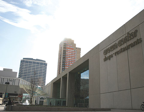 Crown Center, with the shops, restaurants, LegoLand and Sea Life aquarium, between Pershing and Grand,