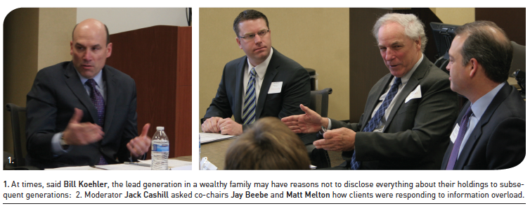 “The intergenerational issue is just becoming a larger issue all the time,” said Bill Koehler. In his experience, the senior generation in a family is not always keen on sharing all of its financial informa-tion within the succeeding generations. “There’s going to be some altering of busi-ness models to address this,” Koehler said, “not just on the technology side, but in the way businesses are affiliated.”